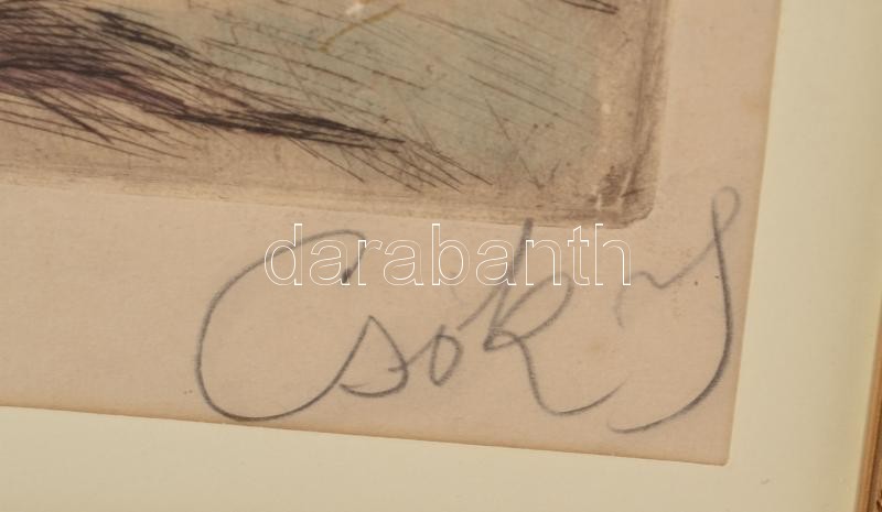 Csók István (1865-1961) - Prihoda István (1891-1956): Báthory Erzsébet. Színezett rézkarc, karton, jelzett (Csók István). Lap jobb alsó sarka kissé sérült. fakeretben, 30×24 cm