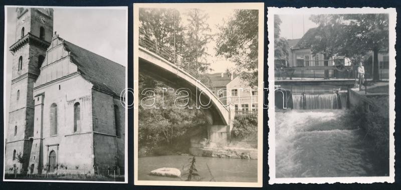 Beszterce/Bistritz/Bistrita, részletek (evangélikus templom, Kainzel híd/Keintzelsteg) össz. 3 db fotó, 2 db hátoldalán feliratozott és datált (1942), 8×6 cm körüli méretekben /3 photos, 2 of them with date 1942 on the reverse