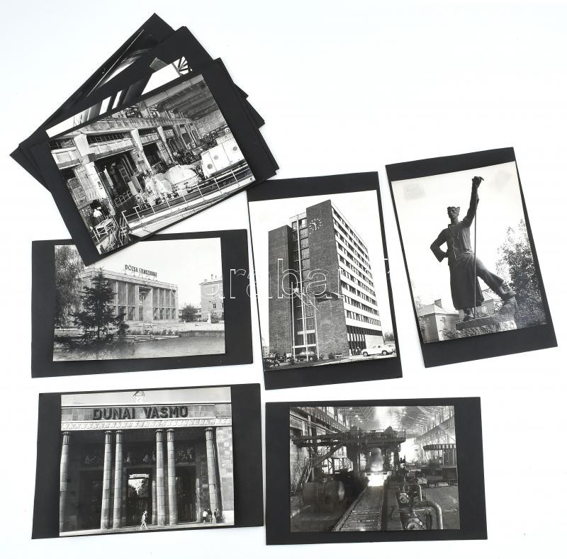 Leírás: Sztálinváros / Dunaújváros, 11 db fotó, közte a Dunai Vasmű képe, kartonra ragasztva, 24×18 cm