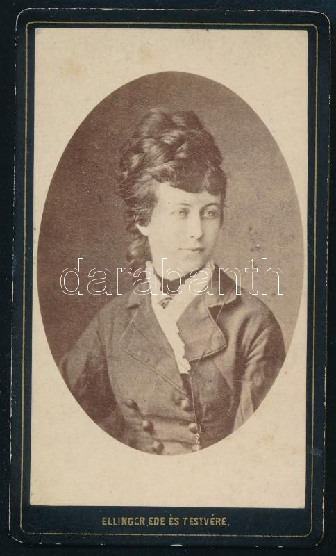 cca 1880 Elegáns fiatal hölgy portréja, proveniencia: Kézdi Kovács László (1864-1942) festőművész hagyatéka, keményhátú fotó Ellinger Ede és Testvére budapesti műterméből, kissé kopott, 10,5x6,5 cm