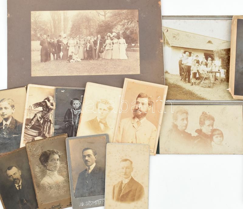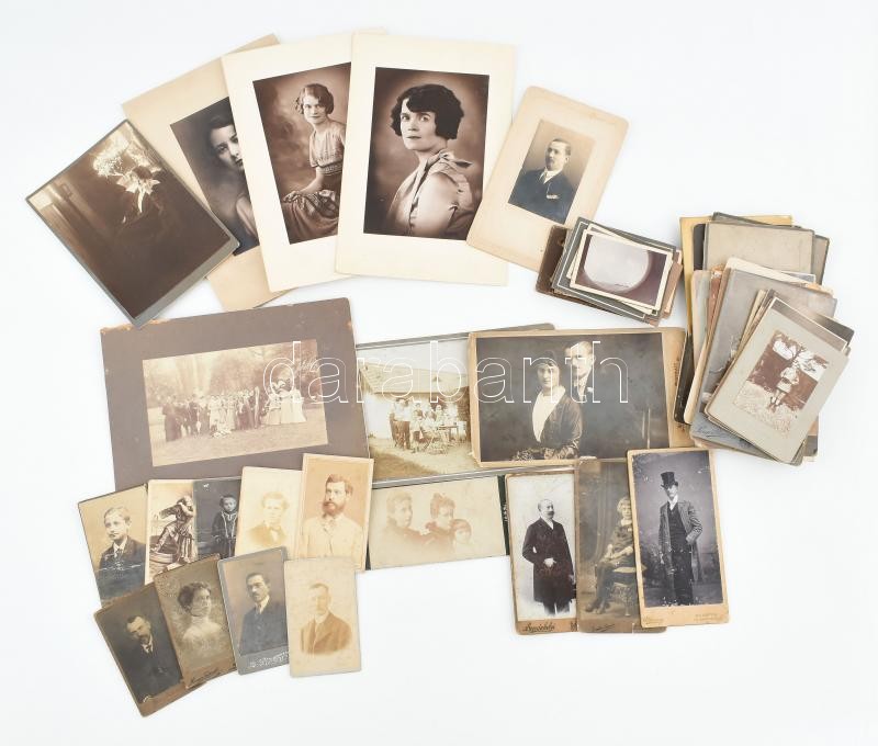 Leírás: cca 1900 56 db vegyes keményhátú és kartonra kasírozott fotó