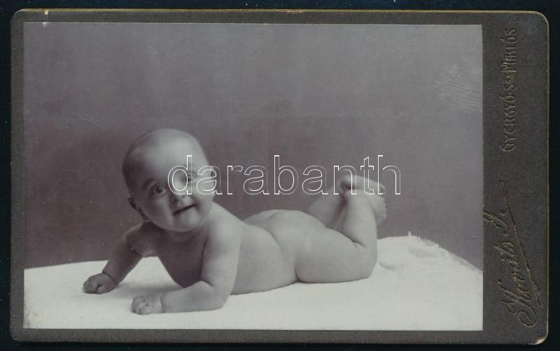 Leírás: cca 1900 Babaportré, keményhátú fotó Kováts István gyergyószentmiklósi műterméből, 10,5×6,5 cm