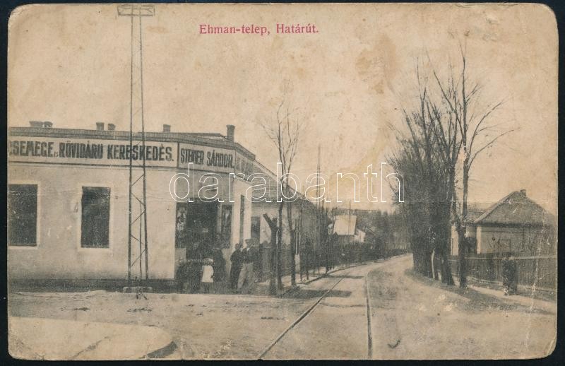 cca 1910-1920 Bp., Ehman-telep, Határút, Steiner Sándor csemege és rövidáru kereskedése, fotólap, hátoldalán korabeli kézzel írt sorokkal (valószínűleg az I. világháború idejéből), törésnyomokkal, kissé foltos, 14x9 cm