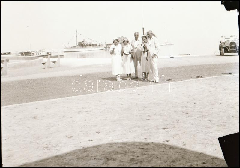 Leírás: cca 1934 Balaton-parti emlék (hajó, automobil), 1 db vintage NEGATÍV, 6x9 cm