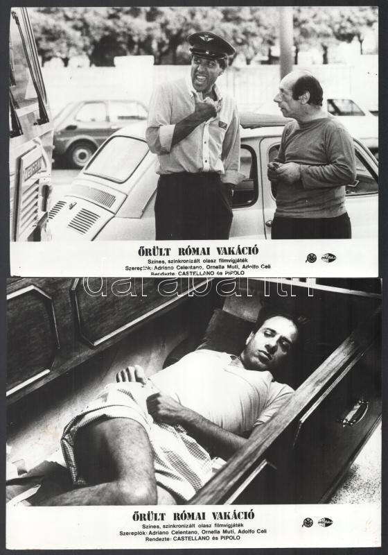 cca 1981 ,,Őrült római vakáció" című olasz filmvígjáték jelenetei és szereplői, 10 db vintage produkciós filmfotó, ezüst zselatinos fotópapíron, a használatból eredő (esetleges) kisebb hibákkal, 18x24 cm