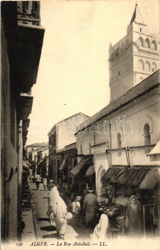 Algiers, Rue Abdallah / street, folklore, merchants https://www.darabanth.com/hu/426-Gyorsarveres/426.0/Kepeslapok/Algeria~1500057/Algiers-Rue-Abdallah-street-folklore-merchants~II1081323