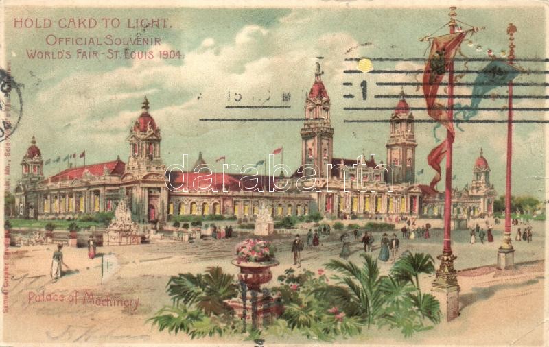 1904 Saint Louis, St. Louis; World's Fair, Palace of Machinery. H... https://www.darabanth.com/hu/426-Gyorsarveres/426.0/Kepeslapok/Amerikai-Egyesult-Allamok~1500058/1904-Saint-Louis-St-Louis-Worlds-Fair-Palace-of-Machinery-Hold-to-light-litho-EK~II1822349