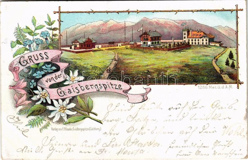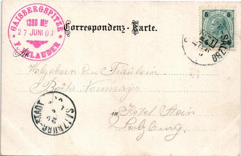 Leírás: 1900 Salzburg, Gruss von der Gaisbergspitze. Verlag v. F. Pflauder Art Nouveau, floral, litho