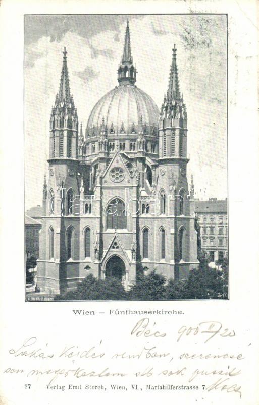 1900 Vienna, Wien XV. Fünfhauserkirche, Kirche Maria vom Siege / churc... https://www.darabanth.com/hu/426-Gyorsarveres/426.0/Kepeslapok/Ausztria~1500061/1900-Vienna-Wien-XV-Funfhauserkirche-Kirche-Maria-vom-Siege-church-Verlag-Emil-Storch-27-EK~II1825548