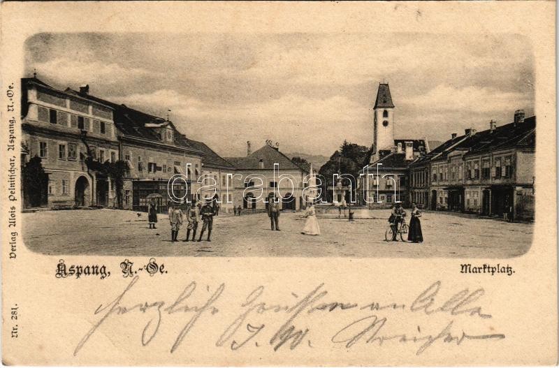 1903 Aspang, Marktplatz / market square, shops, man with bicycle. Verl... https://www.darabanth.com/hu/426-Gyorsarveres/426.0/Kepeslapok/Ausztria~1500061/1903-Aspang-Marktplatz-market-square-shops-man-with-bicycle-Verlag-Alois-Pelnitschar-Nr-281~II2715896