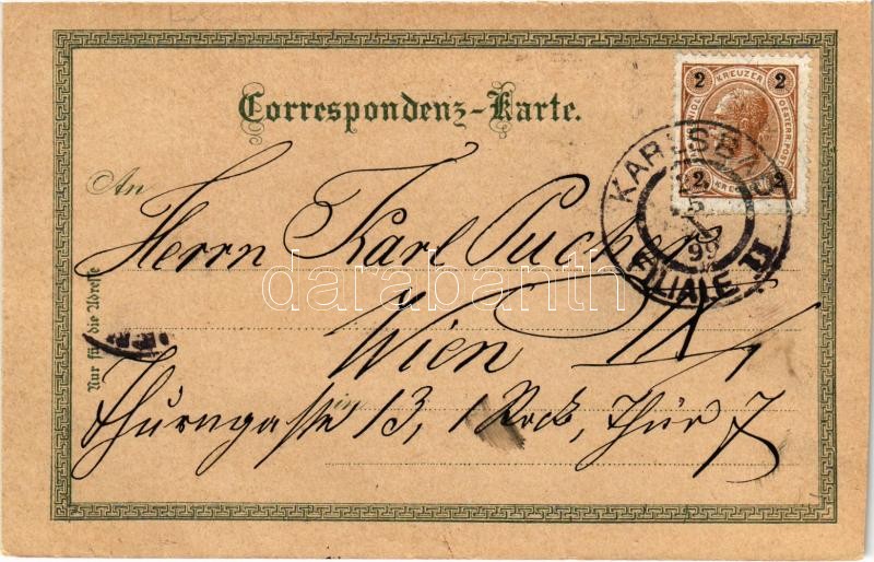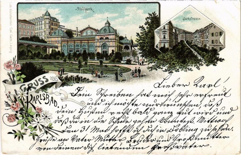 Leírás: 1899 (Vorläufer) Karlovy Vary, Karlsbad; Stadtpark, Parkstrasse. Art Nouveau, floral, litho (cut)