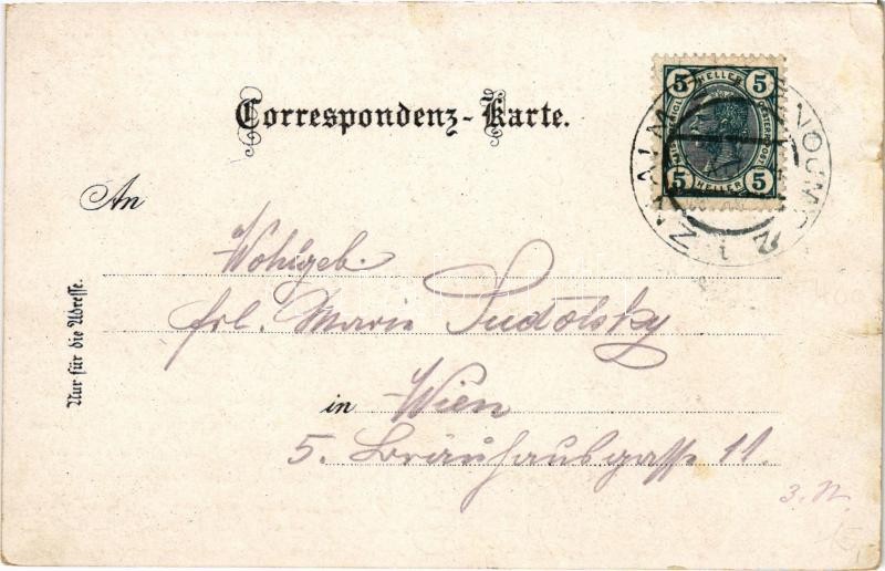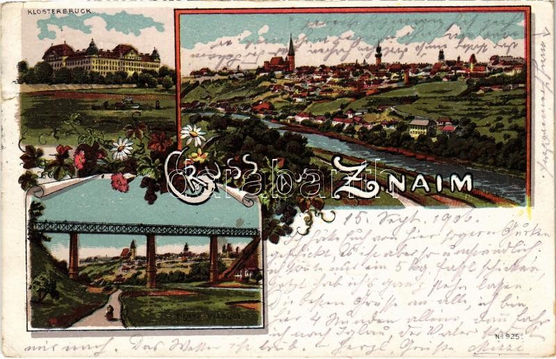 Leírás: 1906 Znojmo, Znaim; Klosterbruck, Thaya Viaduct. Art Nouveau, floral, litho (small tear)