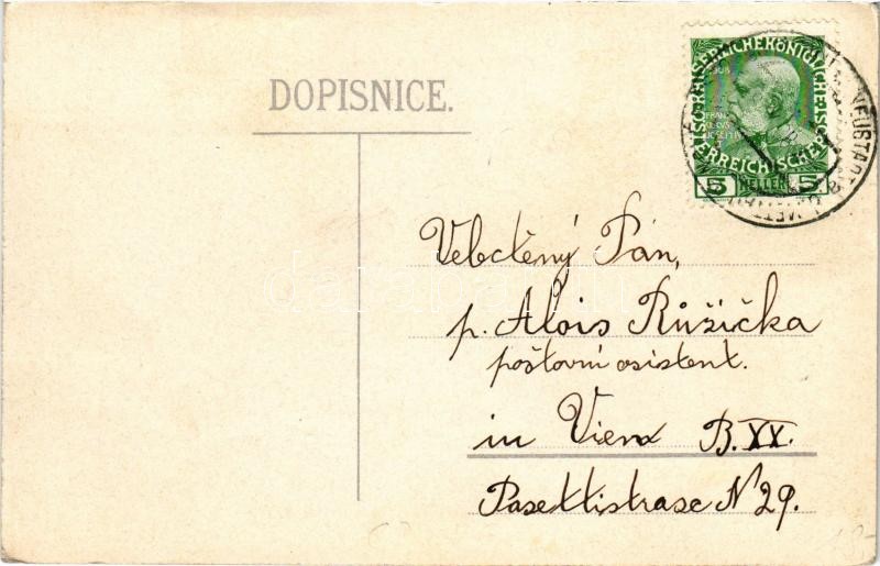 Leírás: Nové Mesto nad Metují, general view. Th. Böhm Art Nouveau, floral, litho (EK)