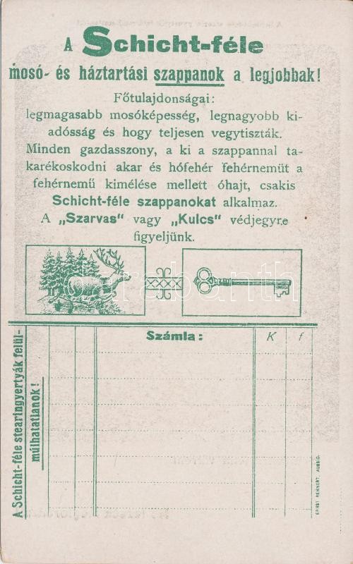 Leírás: Strekov, Schreckenstein; castle. Schicht soap advertisement on the backside