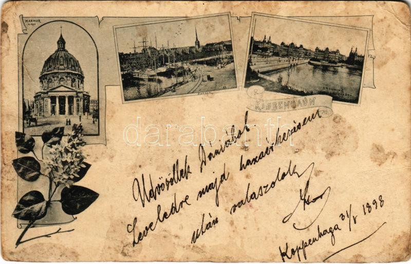 Leírás: 1898 (Vorläufer) Copenhagen, Kobenhavn; Marmor Kirke, Borsen / church, stock market, bridge. Art Nouveau, floral (fa)