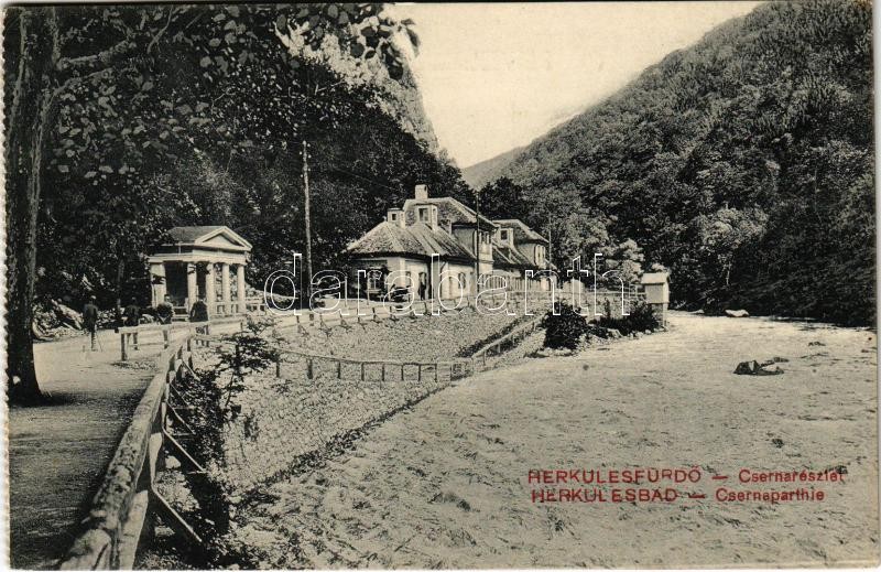 Leírás: 1917 Herkulesfürdő, Baile Herculane; Cserna részlet / riverside
