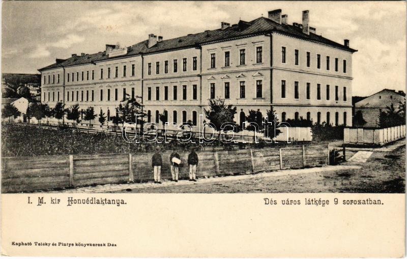 Dés, Dej; M. kir. honvédlaktanya. Teleky és Pintye kiadása. Dés város ... https://www.darabanth.com/hu/426-Gyorsarveres/426.0/Kepeslapok/Erdely~1500006/Des-Dej-M-kir-honvedlaktanya-Teleky-es-Pintye-kiadasa-Des-varos-latkepe-9-sorozatban-~II2720001