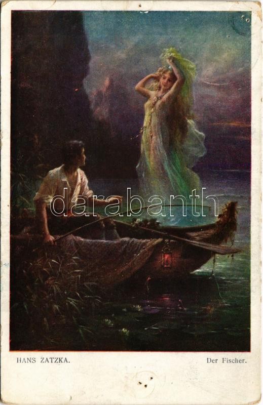 Leírás: 1917 Der Fischer / Erotic lady art postcard. W.R.B. & Co. Galerie Wiener Künstler Nr. 631. s: Hans Zatzka (lyukak / pinholes)