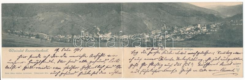 Leírás: 1901 Szomolnok, Schmölnitz, Smolník; látkép. Fried Miksa kiadása. 2-részes kihajtható panorámalap / 2-tiled folding panoramacard