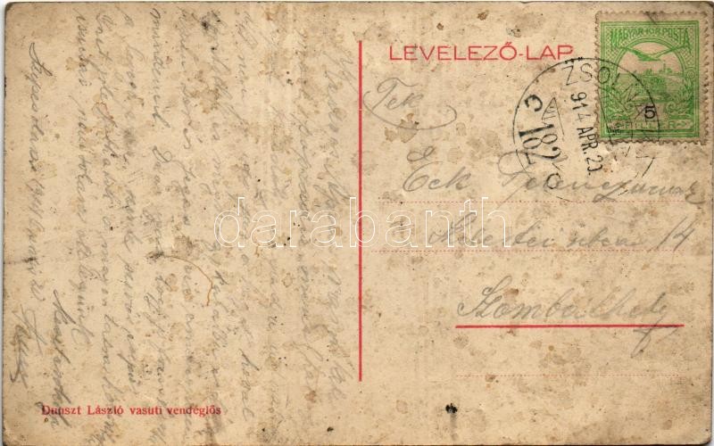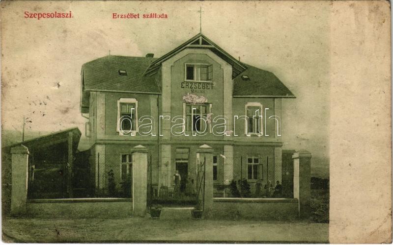 1914 Szepesolaszi, Szepes-Olaszi, Wallendorf, Spisské Vlachy; Erzsébet szálloda. Dunszt László vasúti vendéglős kiadása / hotel + "ZSOLNA - KASSA 182 C" vasúti mozgóposta bélyegző (b)
