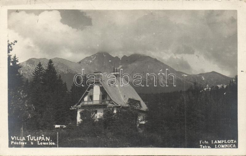 Tátralomnic, Tatranská Lomnica; Villa Tulipán. Foto Lamplota https://www.darabanth.com/hu/426-Gyorsarveres/426.0/Kepeslapok/Felvidek~1500007/Tatralomnic-Tatranska-Lomnica-Villa-Tulipan-Foto-Lamplota~II1829006