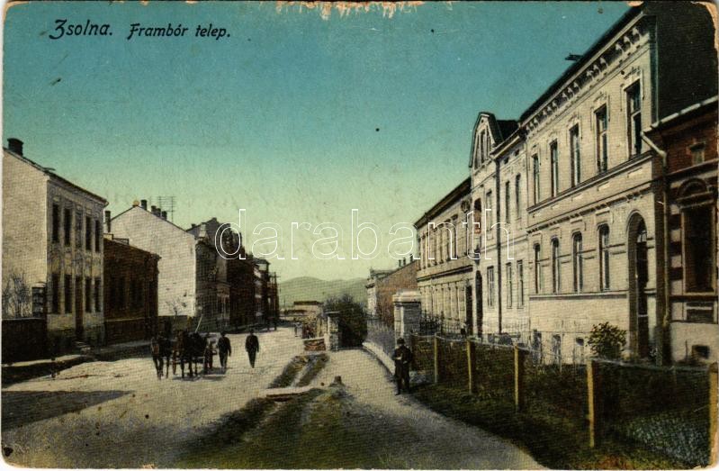 Leírás: Zsolna, Sillein, Zilina; Frambór telep. Buxbaum József kiadása / street view (felületi sérülés / surface damage)