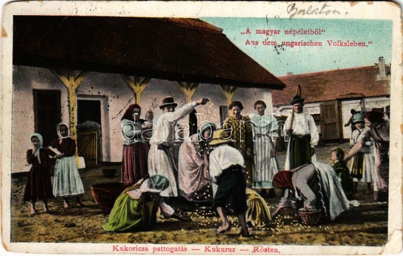 Leírás: 1912 Kukorica pattogatás. A magyar népéletből. Magyar folklór / Hungarian folklore (EM)