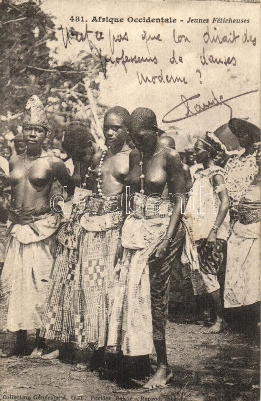 Afrique Occidentale, Jeunes Félicheuses / African folklore, nude woman https://www.darabanth.com/hu/426-Gyorsarveres/426.0/Kepeslapok/Folklor~1500023/Afrique-Occidentale-Jeunes-Felicheuses-African-folklore-nude-woman~II1899074