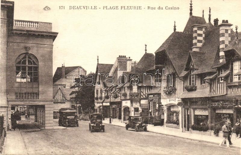 Leírás: Deauville, Plage Fleurie, Rue du Casino / street view, automobiles, shops