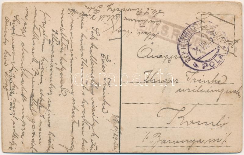 1917 Riccordo di Pola / 12 mini képes leporello az Osztrák-Magyar Monarchia Haditengerészetének hadihajóival, kikötőjével, matrózokkal, búvárral, tengeralattjáróval és ágyúval. C. Fano 1914-15. / K.u.K. Kriegsmarine / Austro-Hungarian Navy leporello with 12 mini images (warships, mariners, diver, submarine, cannon, port) + "SMS RADETZKY" (r)