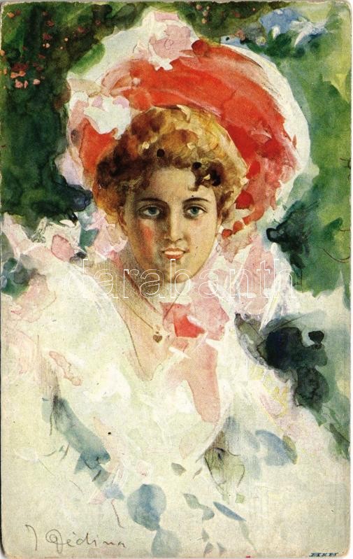Leírás: Studie / Étude. Galerie d'artistes tcheques / Lady art postcard s: J. Dedina (EK)