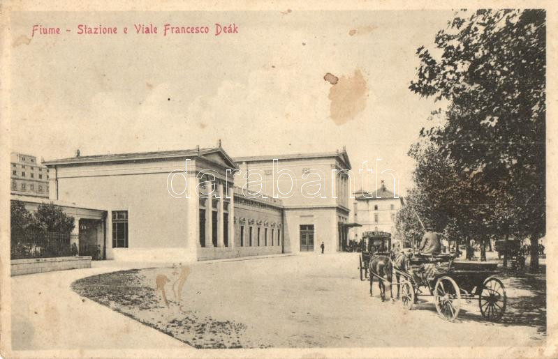 Fiume, Vasútállomás és Deák Ferenc utca, Hotel Quarnero lovashintó / S...