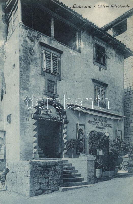 Leírás: Lovran, Laurana, Chiesa Mediovale / medieval house, Vinzenz Blaschke's bakery shop (Rb)