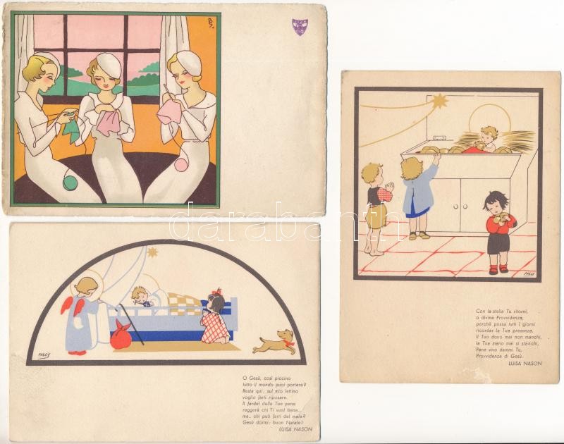 Leírás: 3 RÉGI grafikai motívum képeslap vegyes minőségben / 3 pre-1945 graphic art motive postcards in mixed quality (Maria Soffiantini)