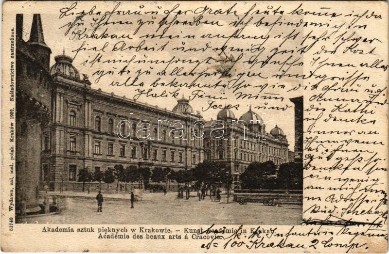 Leírás: 1902 Kraków, Krakkó, Krakau; Akademia sztuk pieknych / Kunst-Academie / Académie des beaux arts / Academy of Fine Arts (EK)