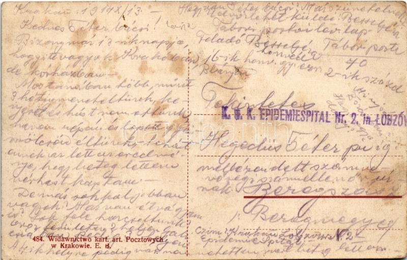 Leírás: Kraków, Krakkó, Krakau; Kosciol O.O. Franciskanow / church / Ferences templom + "K.u.k. Epidemiespital Nr. 2. in Lobzów" (EK)