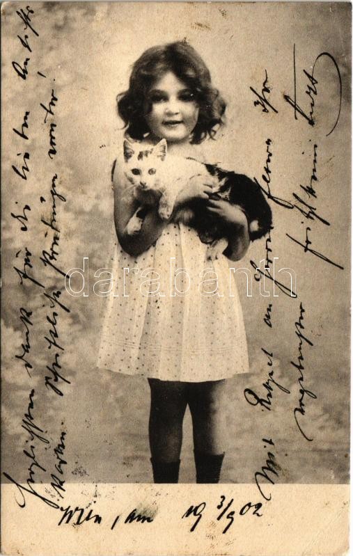Leírás: 1902 Kislány macskával / girl with cat. K.S.P.M. Nr. 304. (EK)