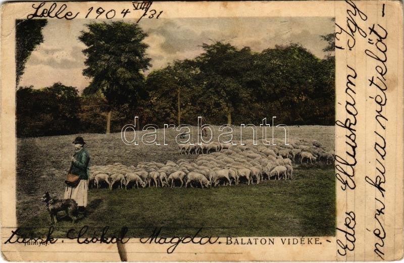 1904 Balaton vidéke, juhnyáj, magyar folklór. D.K.F.E. 899. (EB) https://www.darabanth.com/hu/426-Gyorsarveres/426.0/Kepeslapok/Magyarorszag~1500005/1904-Balaton-videke-juhnyaj-magyar-folklor-DKFE-899-EB~II2720687