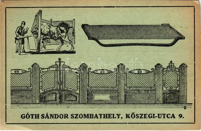 Leírás: Szombathely, Góth Sándor lakatos és sodronyáru gyártó reklámlapja. Kőszegi utca 9. (vágott / cut)