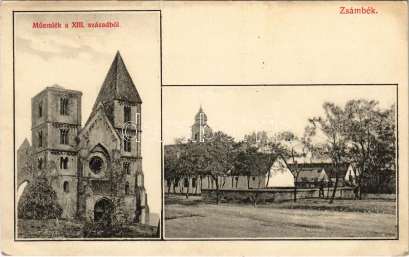 Leírás: Zsámbék, Műemlék a XIII. századból, templomrom, utca. Herczfeld Adolf kiadása (EK)