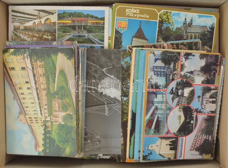 Kb. 1000 db MODERN (1945-1990) magyar és külföldi város és motívum (üdvözlők) képeslap vegyes minőségben nagy dobozban / Cca. 1000 modern (1945-1990) Hungarian and other foreign town-view and motive (greeting) postcards in mixed quality in a big box