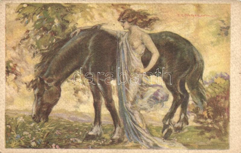Leírás: Lady with horse. Italian art postcard. Uff. Rev. Stampa Milano 439-1. s: T. Corbella