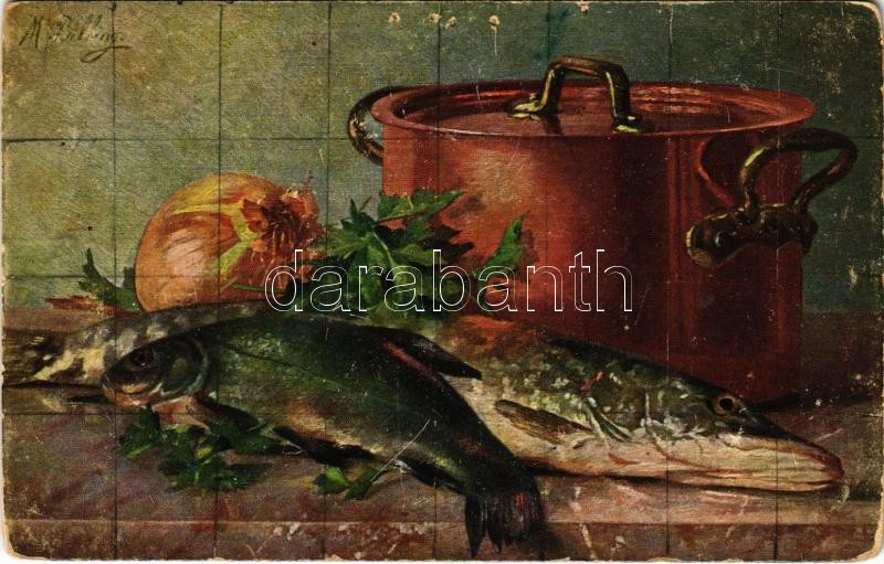 Still life art postcard with fish s: M. Billing (b) https://www.darabanth.com/hu/426-Gyorsarveres/426.0/Kepeslapok/Muveszlapok~1500039/Still-life-art-postcard-with-fish-s-M-Billing-b~II2716592