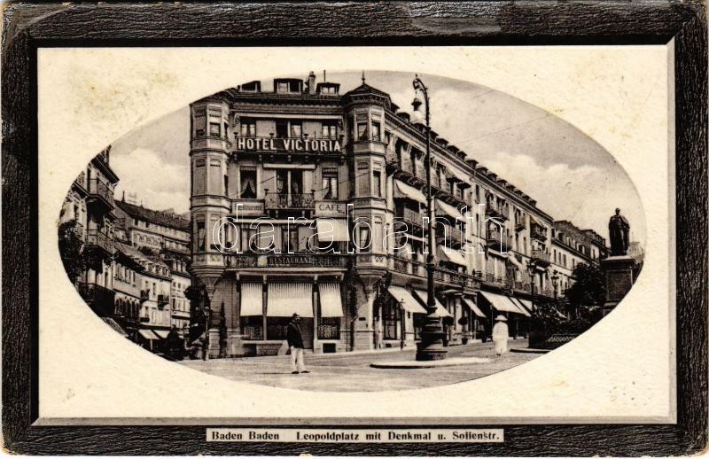Leírás: 1915 Baden, Baden-Baden; Leopoldplatz mit Denkmal u. Sofienstrasse / square, monument, street view, Hotel Restaurant Victoria (EK)