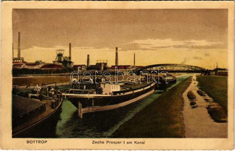 1923 Bottrop, Zeche Prosper I am Kanal / canal, bridge, barges, collie... https://www.darabanth.com/hu/426-Gyorsarveres/426.0/Kepeslapok/Nemetorszag~1500091/1923-Bottrop-Zeche-Prosper-I-am-Kanal-canal-bridge-barges-colliery-EK~II2716650