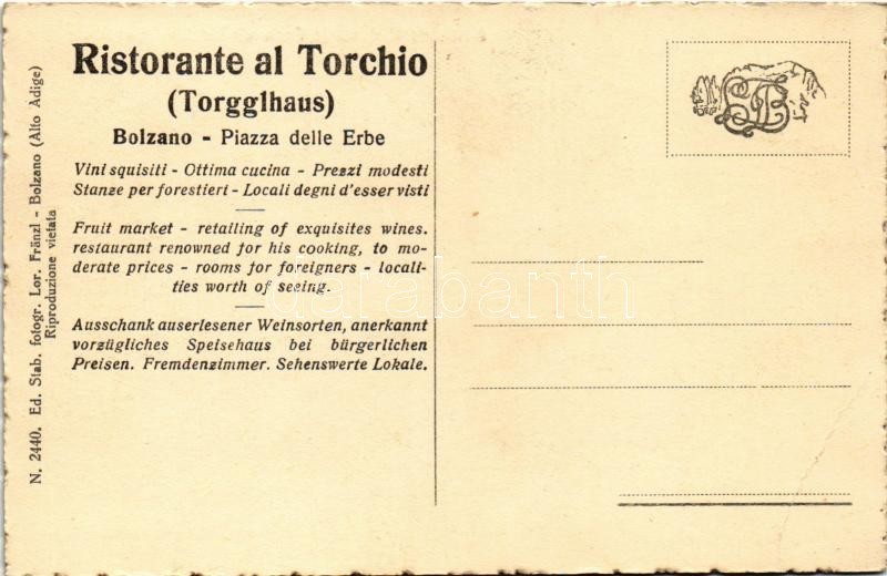 Bolzano, Bozen (Südtirol); Ristorante Casa al Torchio (Torgglhaus) / r... https://www.darabanth.com/hu/426-Gyorsarveres/426.0/Kepeslapok/Olaszorszag~1500093/Bolzano-Bozen-Sudtirol-Ristorante-Casa-al-Torchio-Torgglhaus-restaurant-market-advertisem~II2714993