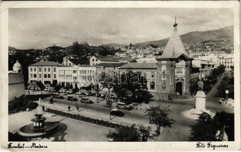 Leírás: 1949 Madeira, Funchal / street view, automobiles, bank (EB)