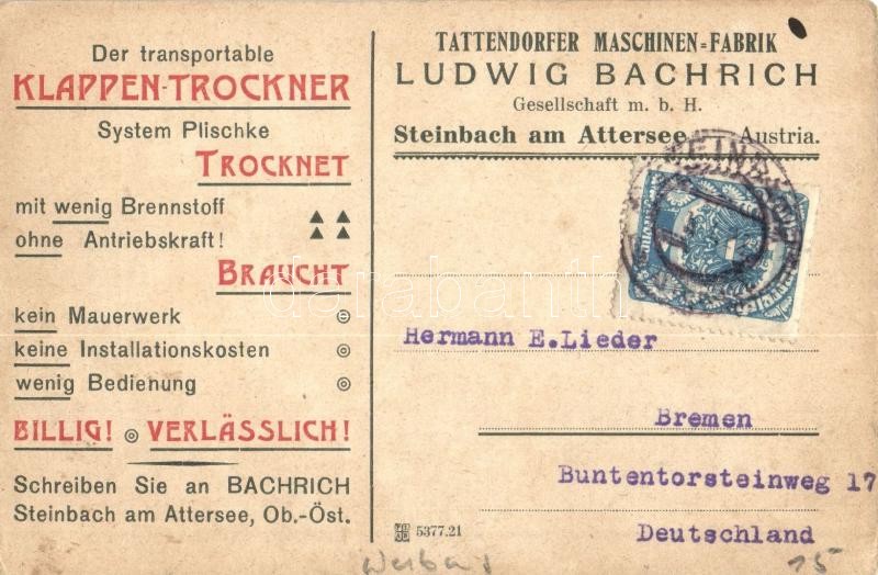 Leírás: Der transportable Klappen-Trockner. Tattendorfer Maschinen Fabrik Ludwig Bachrich, Steinbach am Attersee / Austrian portable flap dryer advertisement from Tattendorfer Machine Factory (EK)