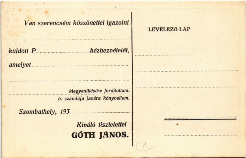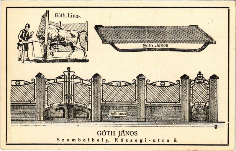 Góth János szombathelyi lakatos reklámlapja. Kőszegi utca 9. https://www.darabanth.com/hu/426-Gyorsarveres/426.0/Kepeslapok/Reklam~1500041/Goth-Janos-szombathelyi-lakatos-reklamlapja-Koszegi-utca-9~II2719672