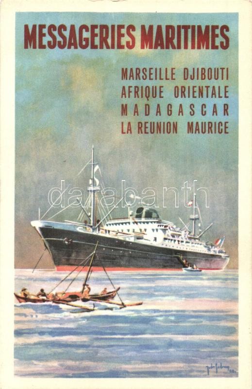 Messageries Maritimes / French merchant shipping company advertisement... https://www.darabanth.com/hu/426-Gyorsarveres/426.0/Kepeslapok/Reklam~1500041/Messageries-Maritimes-French-merchant-shipping-company-advertisement-card-s-Jean-des-Gachons~II1733547